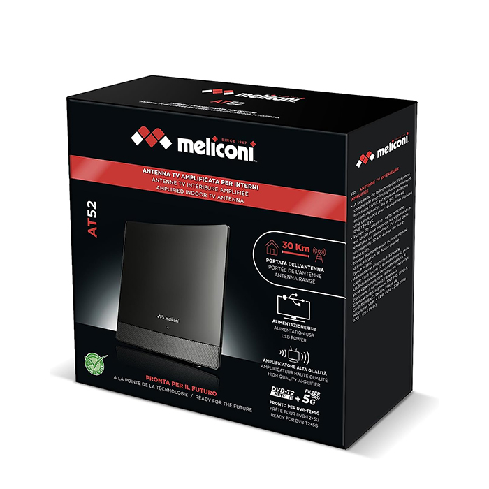Εσωτερική κεραία τηλεόρασης με ενισχυτή 52dB, για λήψη αναλογικού και ψηφιακού τηλεοπτικού σήματος.