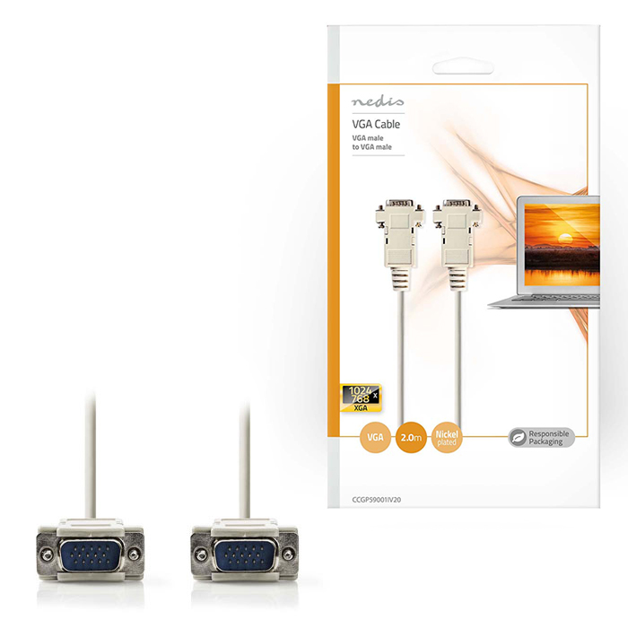 NEDIS CCGP59001IV20 Καλώδιο VGA αρσ. σε VGA αρσ. 2m Ivory