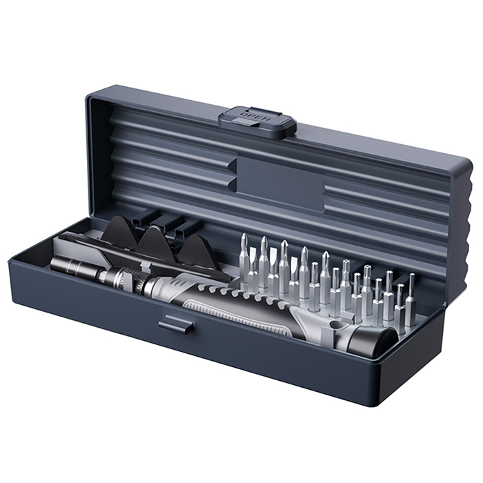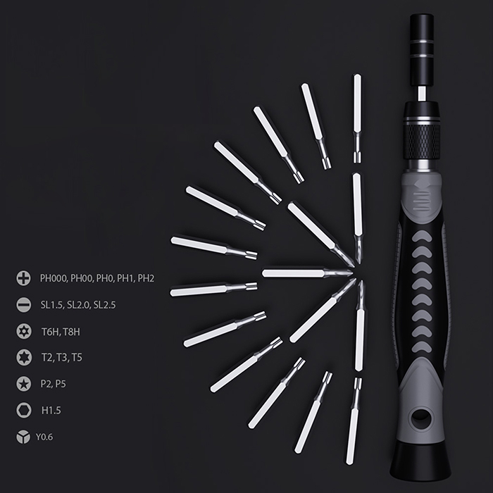 Το σετ κατσαβιδιών ακριβείας PCW08H είναι ένα ολοκληρωμένο σετ με συνολικά 25 εξαρτήματα, ιδανικό για επισκευή smartphone και υπολογιστών. Περιέχει 17 ανταλλακτικές μύτες κατασκευασμένες από υψηλής ποιότητας χάλυβα χρωμίου βαναδίου, το οποίο είναι γνωστό για την μεγάλη αντοχή του.
