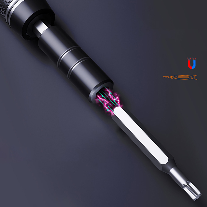 Η μαγνητική θήκη μεταφοράς από αλουμίνιο διαθέτει κατσαβίδι με δυνατότητα επιμήκυνσης και περιστρεφόμενο καπάκι 360 μοιρών. Αυτό επιτρέπει στο κατσαβίδι να χρησιμοποιείται σε διαφορετικές θέσεις για να φτάσετε εύκολα σε δυσπρόσιτα σημεία.